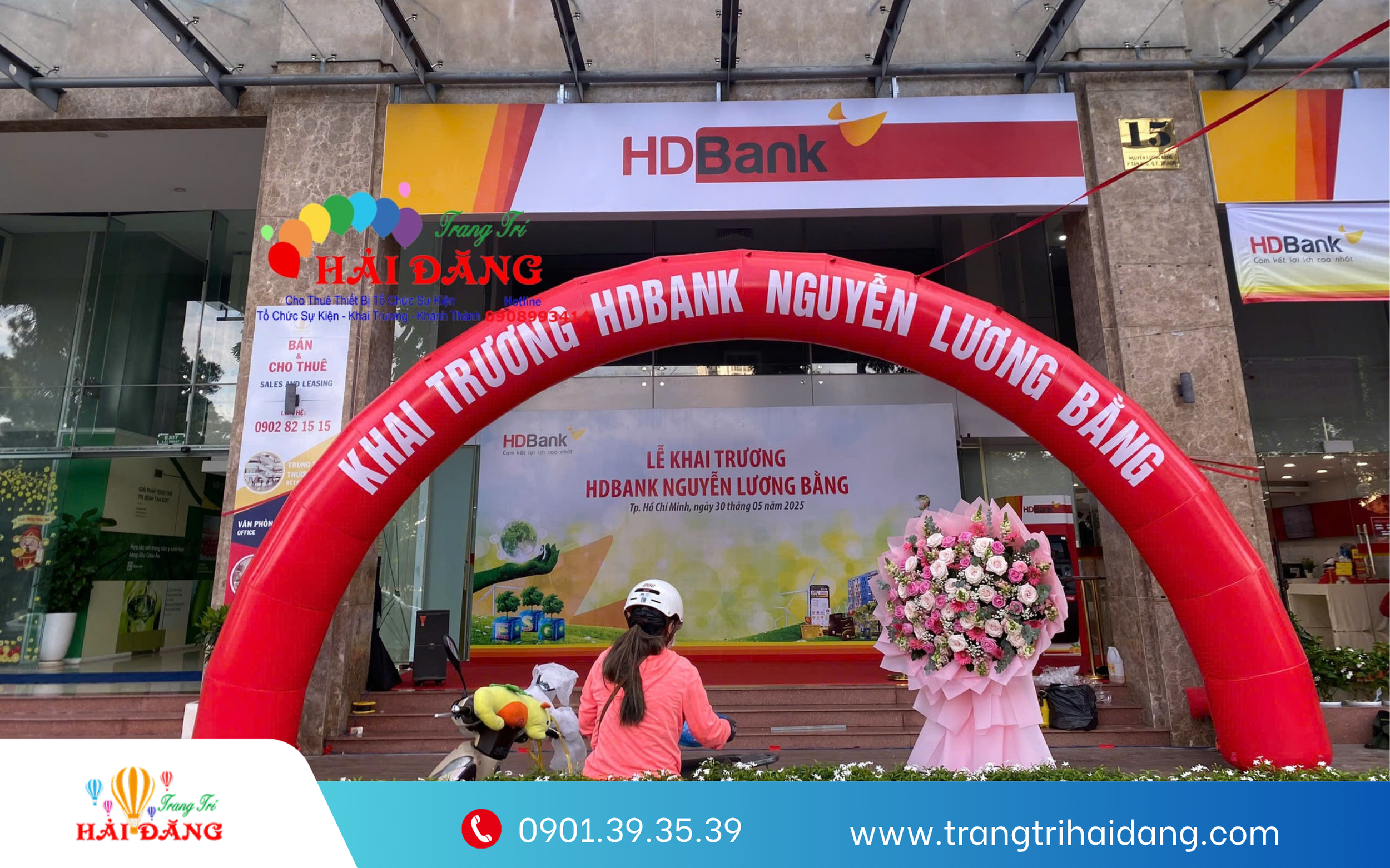 Cho thuê cổng hơi khai trương ngân hàng HDBANK Nguyễn Lương Bằng