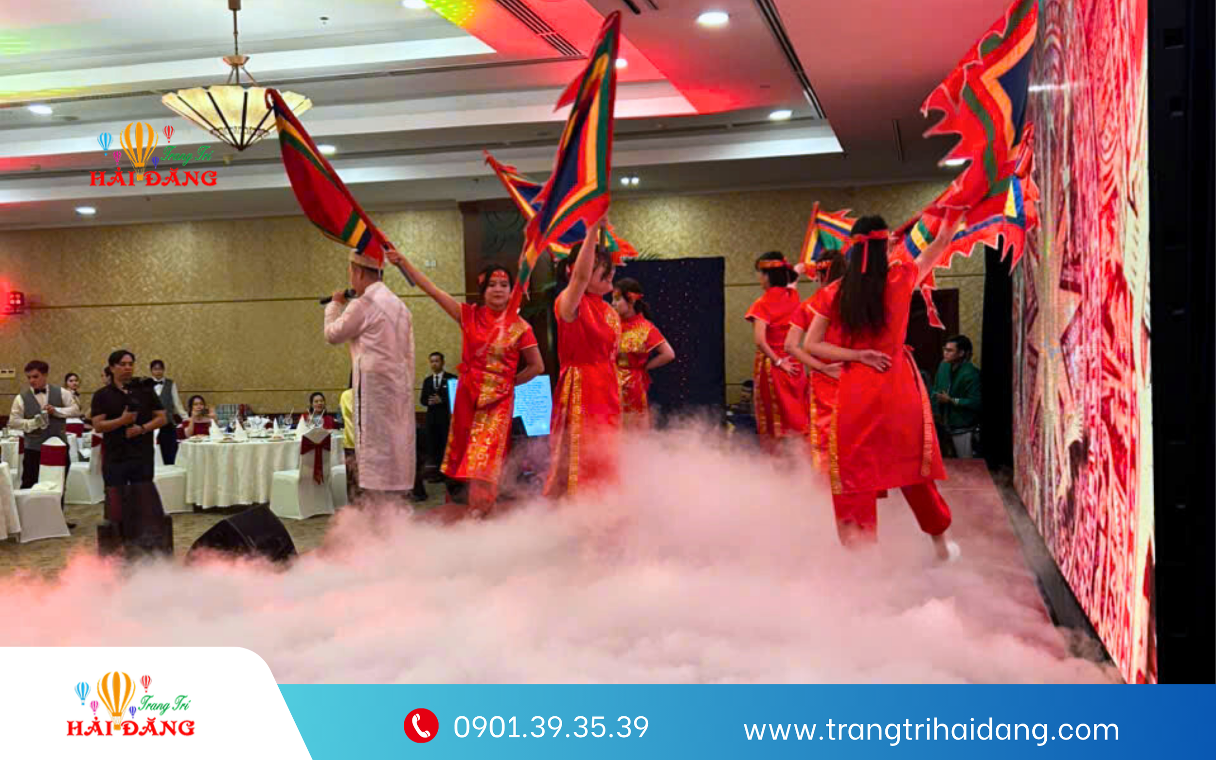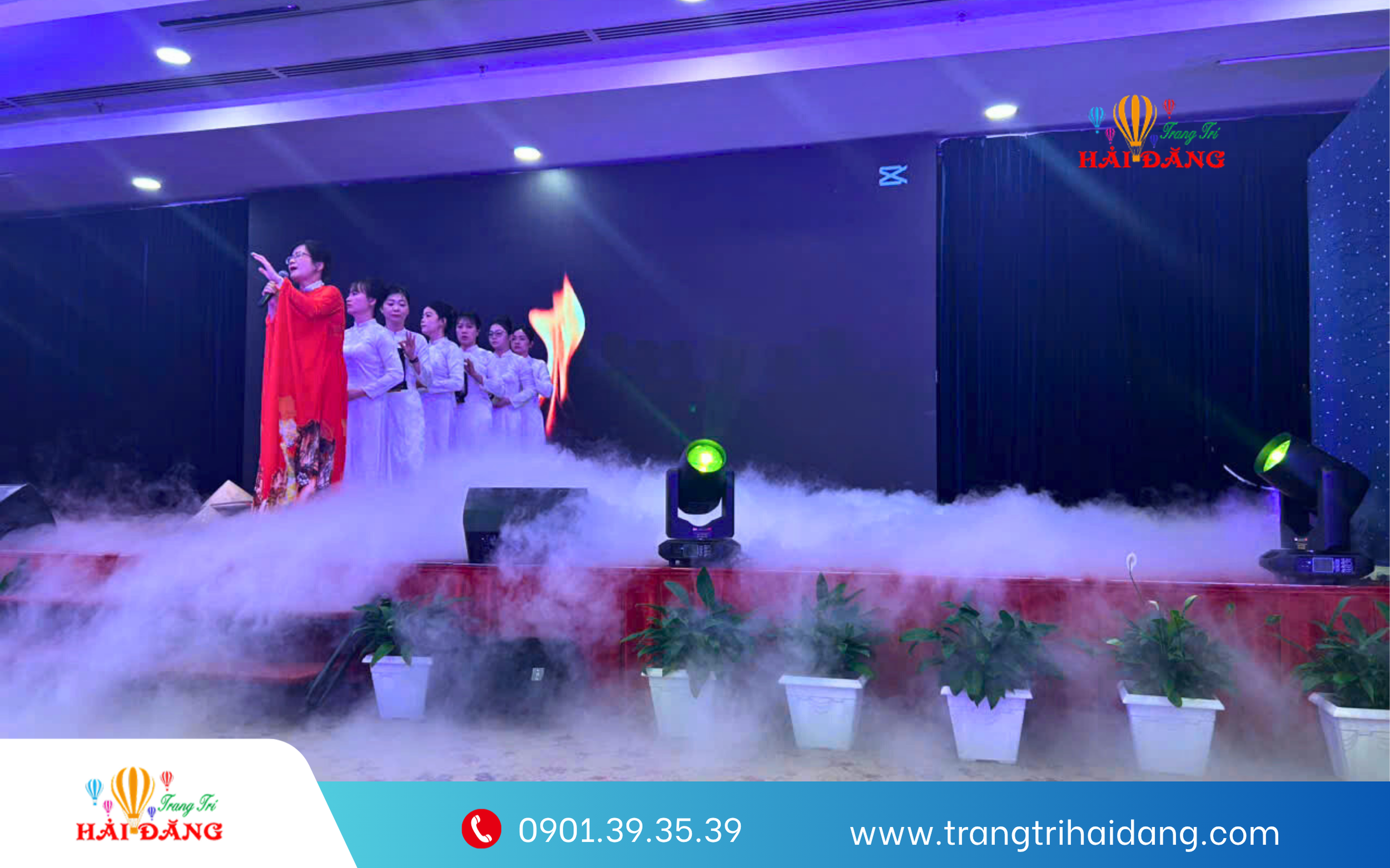 Trang Trí Hải Đăng sử dụng máy tạo khói lạnh công nghệ mới, cho làn khói mịn, lan đều và bám sàn tốt, giúp tạo không gian huyền ảo mà không gây ảnh hưởng đến sức khỏe hay thiết bị xung quanh.